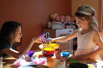LB is the little smiling personification of whimsical childhood most of the time. The Waldorf group continues to be perfect for her. She draws, paints, sings, dances, sews, knits, cooks, bakes, imagines, creates, plays, explores and enjoys her way through most of her days, After she gets home happy and tired, we do a lesson from MUS and read from a SL 2 reader. It is perfect for her right now.